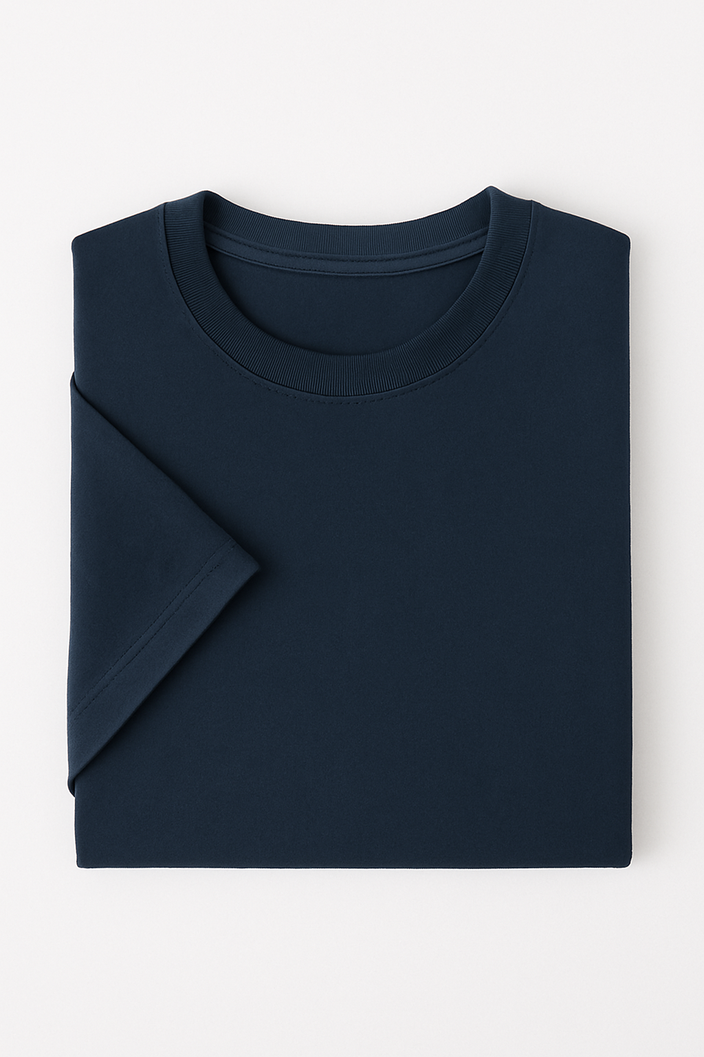 - Timeless navy blue crew neck tee with classic style and regular fit.